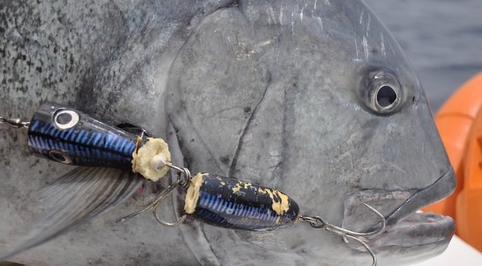 We Recommend Fluorocarbon leader from 60 lb min to 90lb